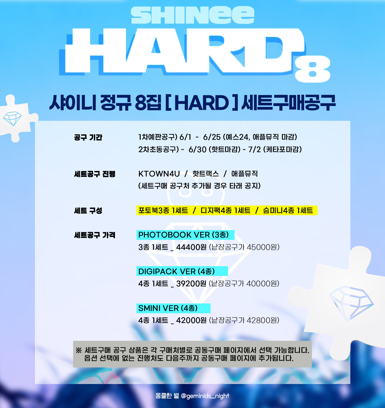 (종료) [몽클한별] 샤이니 정규8집 HARD 공동구매공구 공지 2023. 6. 1. 17:45